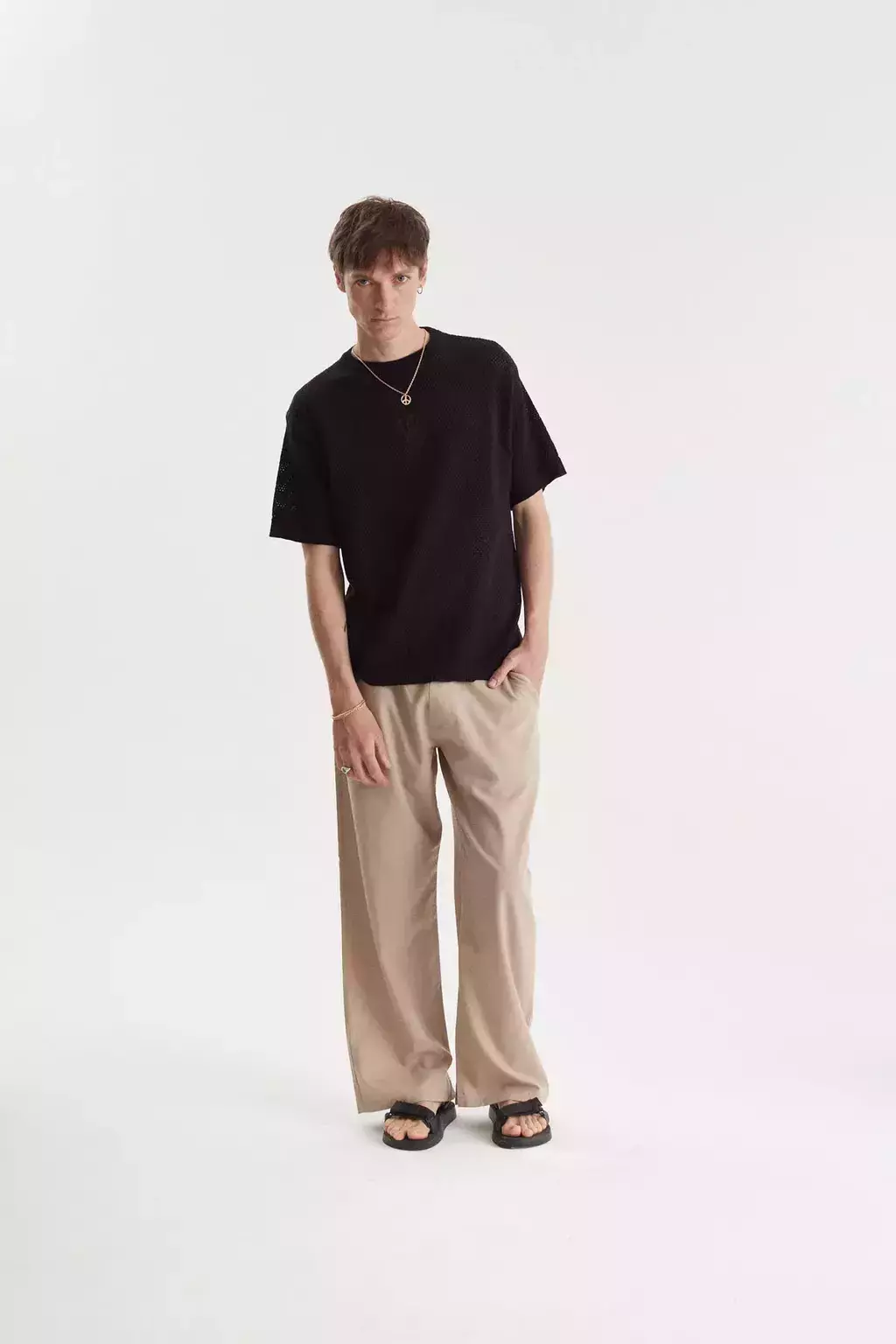 El mide 1'87 y usa talle S. Ella mide 1'70 y usa talle S.